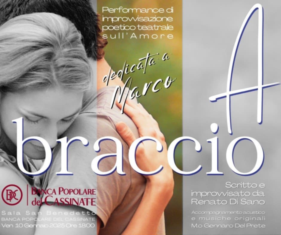 Venerdì 10 gennaio, alle ore 18,00, presso la sala San Benedetto della Banca Popolare del Cassinate, l'evento "A Braccio", scritto da Renato Di Sano.