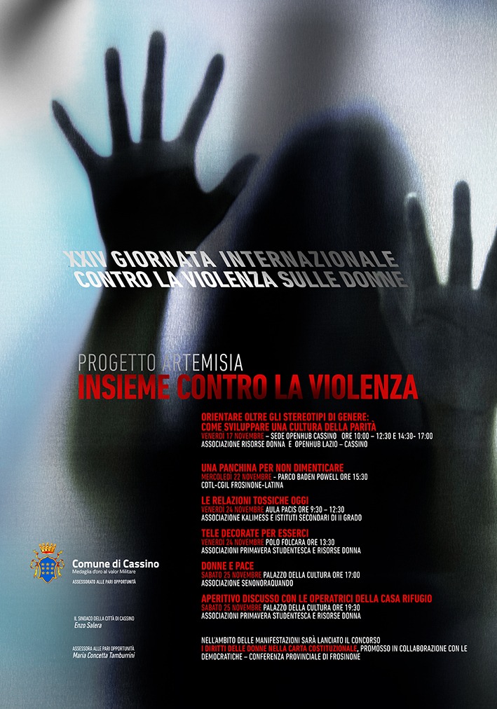 - “LE RELAZIONI TOSSICHE OGGI”, con l’associazione Kalimess e gli Istituti scolastici di secondo grado di Cassino, presso l’Aula Pacis, il 24 novembre, dalle ore 9,30;
