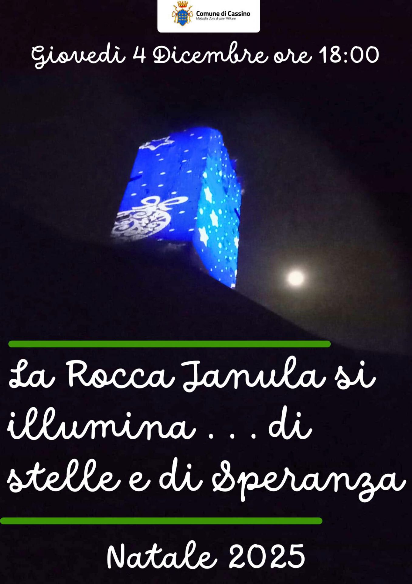 Questa sera alle ore 18, in occasione del Natale, la Rocca Janula, monumento civico simbolo della Città di Cassino, s'illuminerà a festa!