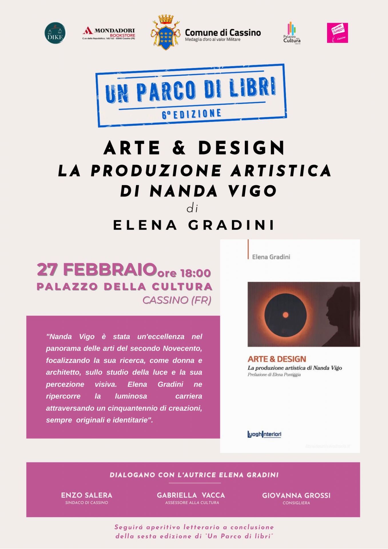 Ultimo appuntamento della sesta edizione di “Un Parco di Libri”. Al centro dell’incontro la presentazione del volume "Arte & Design. La produzione artistica di Nanda Vigo", scritto da Elena Gradini, che ripercorre l’attività e la ricerca di Nanda Vigo (1936–2020), artista, architetta e designer tra le protagoniste più originali del secondo Novecento italiano.