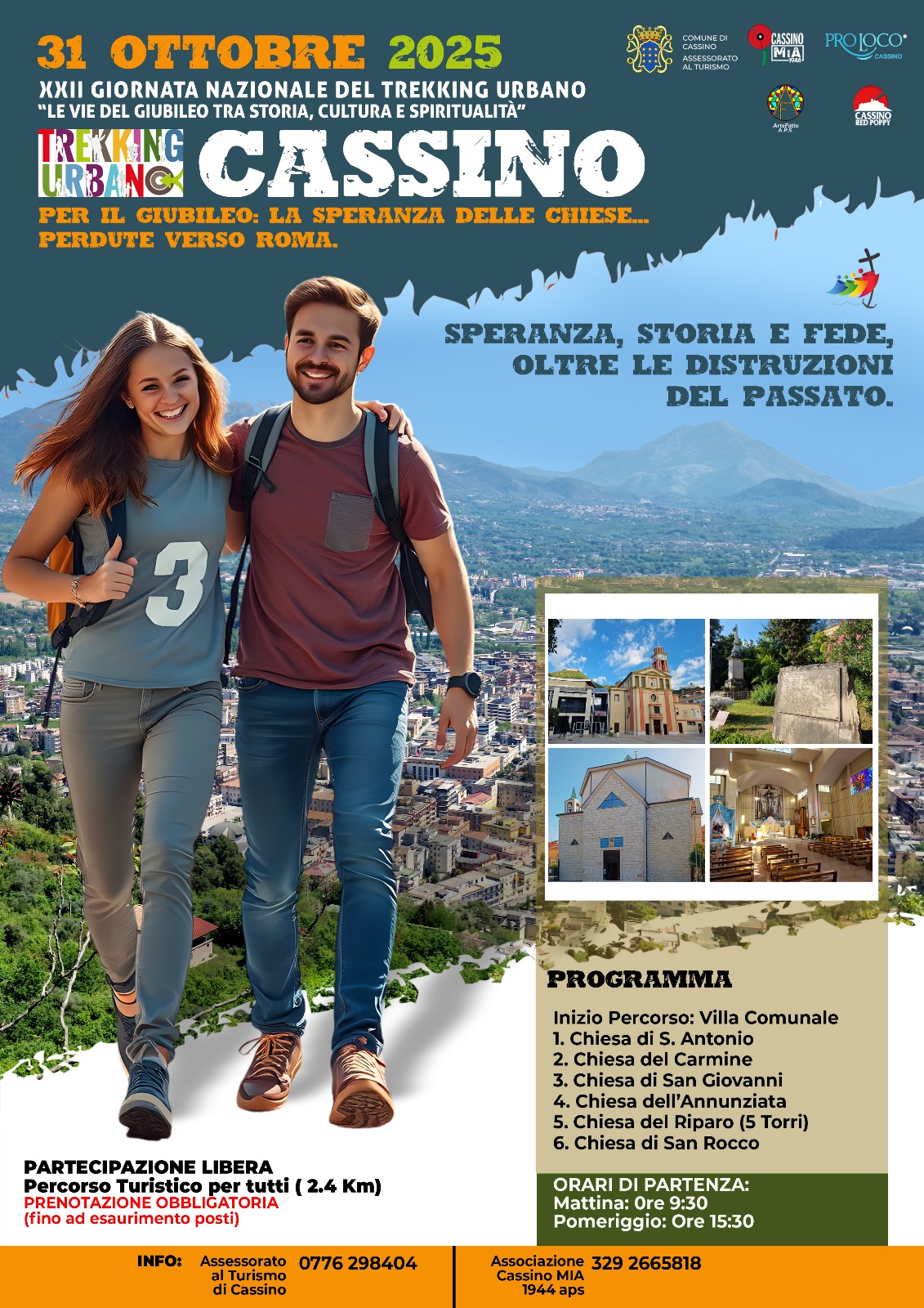 “Il Trekking Urbano – ha ricordato l’assessora al Turismo, Maria Concetta Tamburrini – è un modo per vivere la nostra città con sguardo nuovo, lento e consapevole. Cassino partecipa con un percorso che parla di Memoria e di rinascita, un invito a camminare insieme verso il futuro, con la forza di una fede che resiste e si rinnova. La mattinata vedrà la partecipazione di alcune classi delle scuole secondarie di primo grado di Cassino, a testimoniare l’importanza di far vivere momenti come questi anche alle giovani generazioni".
