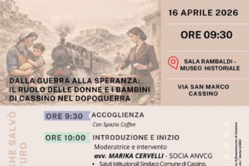 Il Comune di Cassino invita la cittadinanza, per il 16 aprile, all'evento dal titolo "Dalla guerra alla speranza: il ruolo delle donne e i bambini...