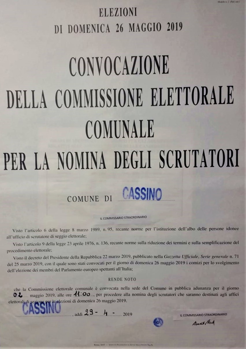 Convocazione Comizi Comune di Cassino