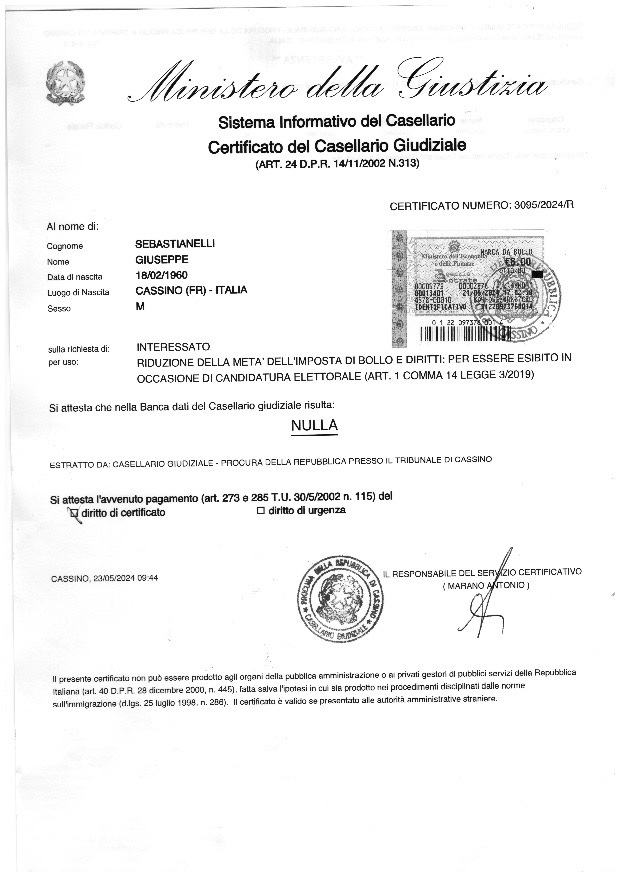 Candidato Sindaco: Sebastianelli Giuseppe