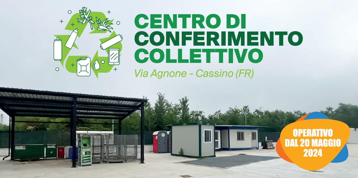 Si avvisa la cittadinanza che dal 20 maggio 2024 è operativo il centro di conferimento collettivo in Via Agnone - Cassino (FR)