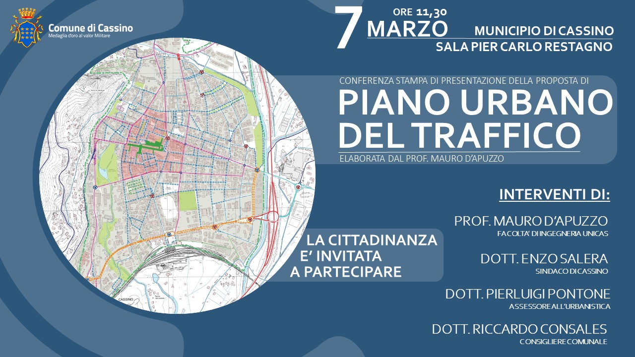 Piano Urbano del Traffico, la proposta elaborata dal professor Mauro D’Apuzzo della Facoltà di Ingegneria Unicas, verrà illustrata nel corso di una conferenza stampa, giovedì 7 marzo, alle ore 11,30, nella sala Restagno del Comune di Cassino.