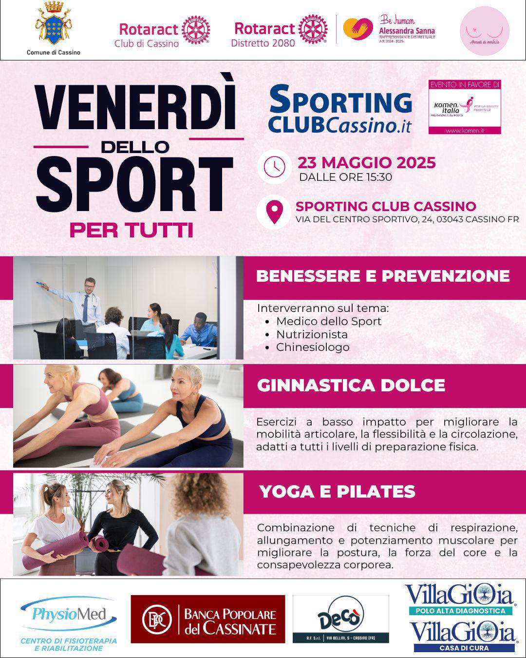 Allo Sporting club di Cassino, l'iniziativa "Venerdì dello Sport per tutti", alle ore 15,30 del 23 maggio.