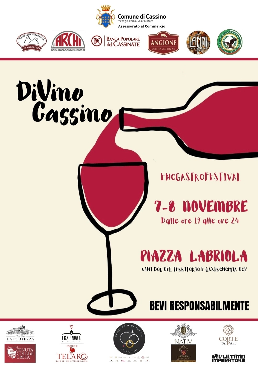 diVino Cassino è l'evento autunnale organizzato dall’Assessorato al Commercio per valorizzare e promuovere i produttori vitivinicoli ed agroalimentari del territorio.