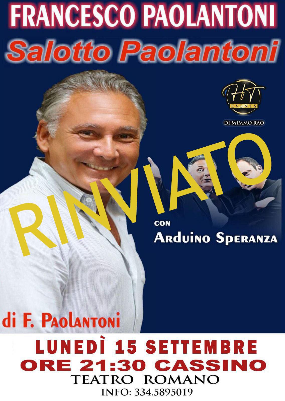 La Ht events, che cura l'organizzazione dello spettacolo di Francesco Paolantoni inizialmente previsto al Teatro Romano per il 15 settembre, ha informato l'Ente che l'evento è rinviato a data da destinarsi.