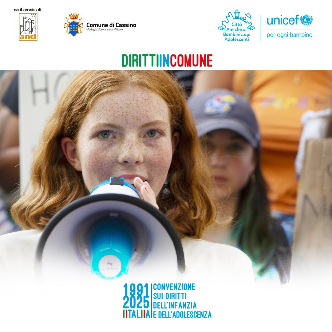 Il Comune di Cassino aderisce a “Diritti in Comune”, l’iniziativa di Unicef Italia, patrocinata dall'Anci, che punta, con il coinvolgimento diretto delle Amministrazioni comunali, a sensibilizzare la cittadinanza sul Programma Città amiche dei bambini e degli adolescenti.