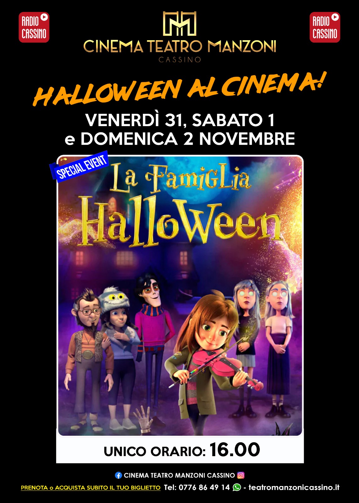 I bambini che parteciperanno al laboratorio organizzato dalla associazione DIKE potranno acquistare il biglietto con tariffa ridotta alla proiezione speciale del film "La famiglia Halloween", in programma alle ore 16, sabato 1 e domenica 2 novembre.