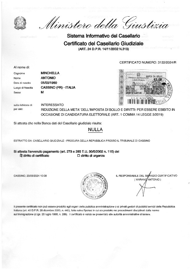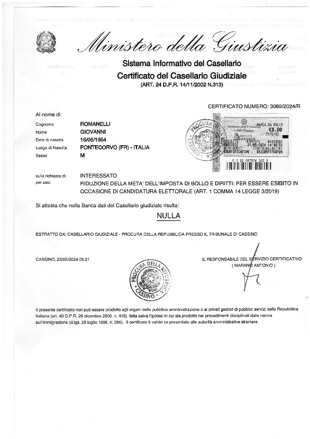 Candidate for mayor: Sebastianelli Giuseppe