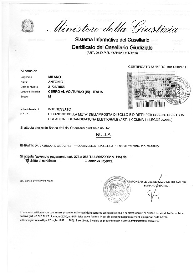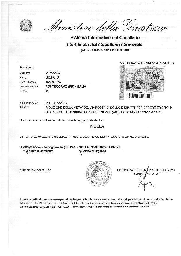 Candidate for mayor: Buongiovanni Arturo