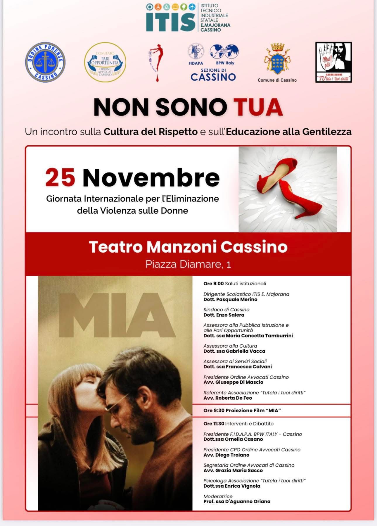 In occasione della Giornata Nazionale per l'Eliminazione della Violenza sulle Donne, in Piazza Diamare, si terrà, a partire dalle ore 9, l'iniziativa "Non sono tua".
