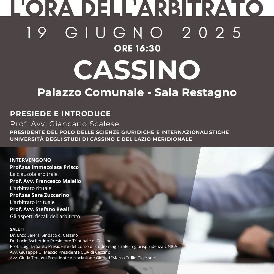 "L'ora dell'arbitrato", giovedì 19 giugno l'incontro in sala Restagno, alle ore 16,30.