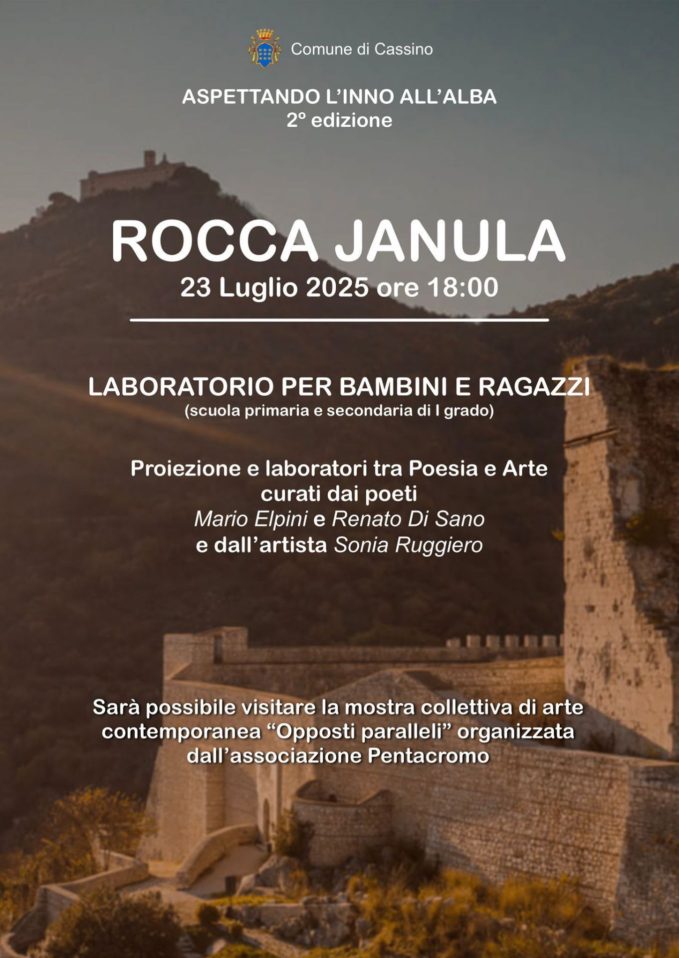 Dopo l'apertura serale di venerdì 27 giugno ore 19:30, seguono iniziative ed eventi che si svolgeranno presso la Rocca Janula nel periodo estivo.