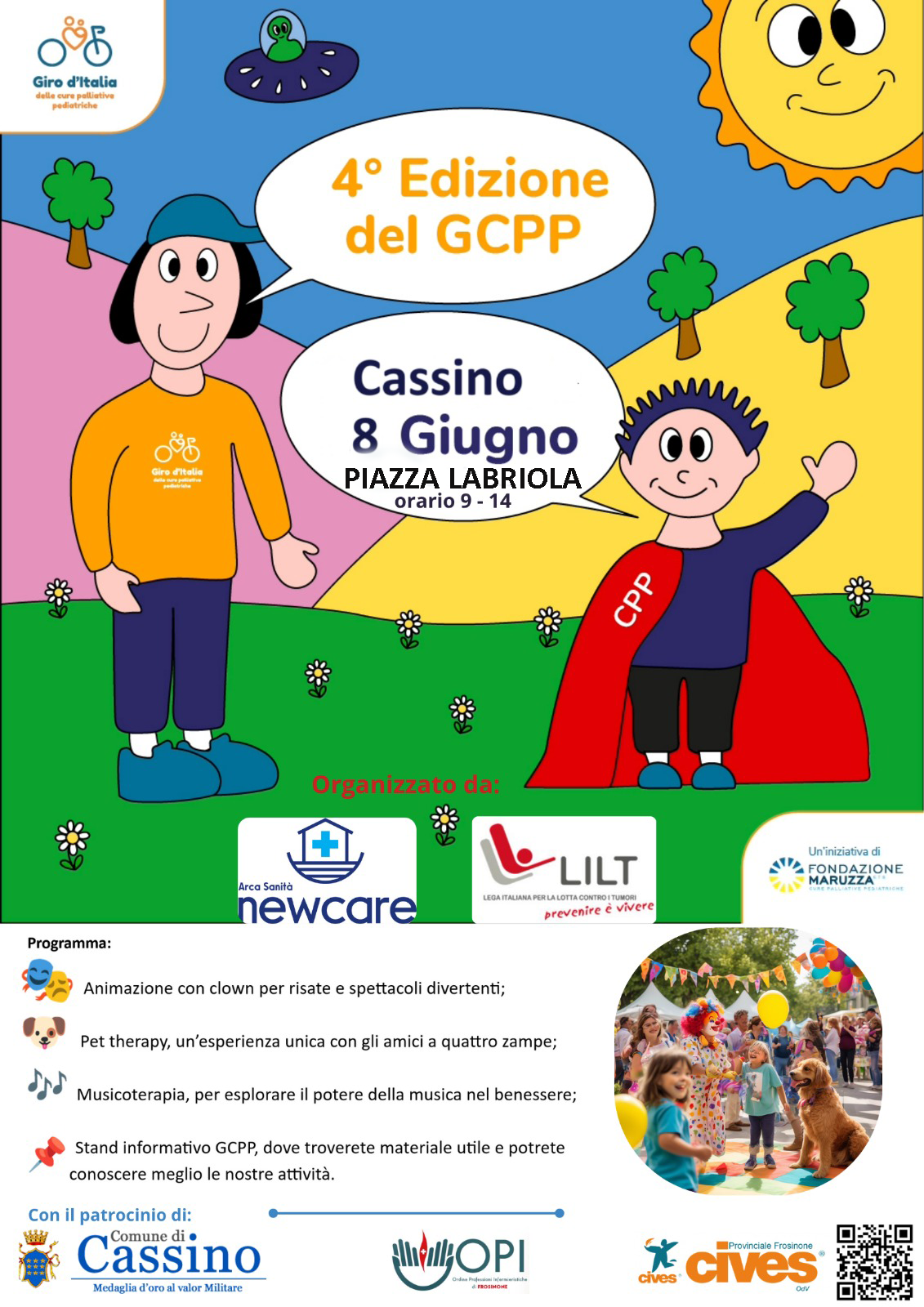 La quarta edizione del Giro d'Italia delle Cure Palliative Pediatriche (GCPP) fa tappa a Cassino, in piazza Labriola.