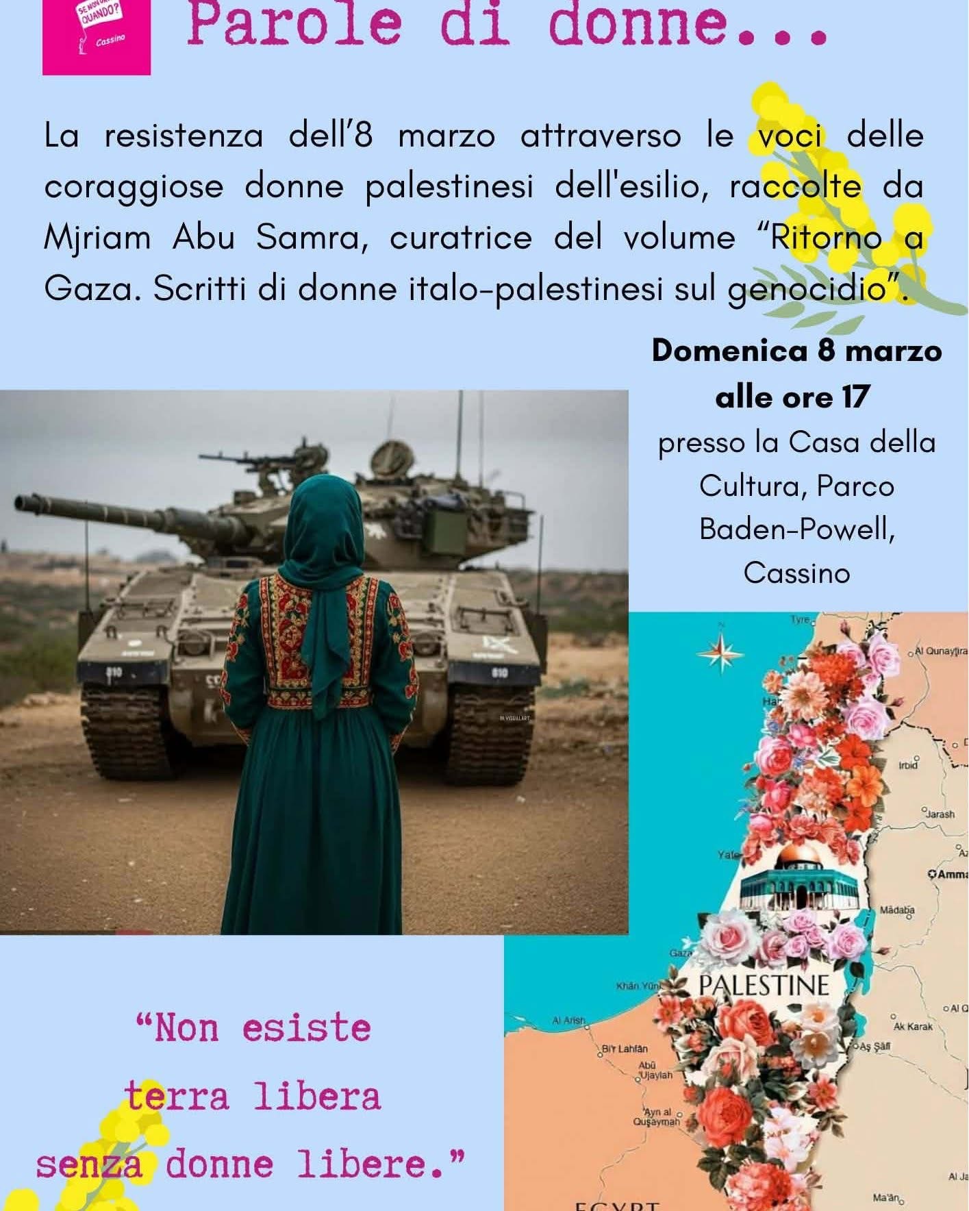 L’iniziativa propone un momento di riflessione dedicato alle voci delle donne palestinesi, attraverso il lavoro di raccolta e cura di Myriam Abu Samra, curatrice del volume “Ritorno a Gaza. Scritti di donne italo-palestinesi sul genocidio”.