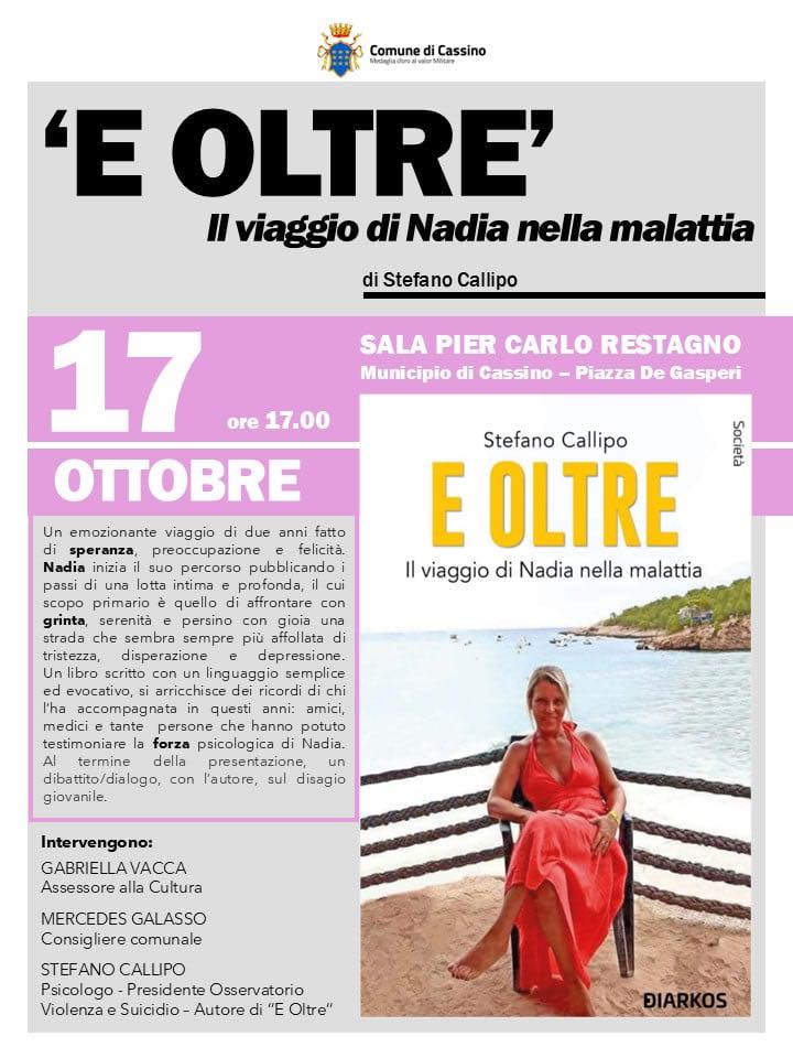 Questo e molto altro è il libro di Stefano Callipo, "E Oltre-Il viaggio di Nadia nella malattia" che verrà presentato in sala Restagno venerdì 17 ottobre, alle ore 18.