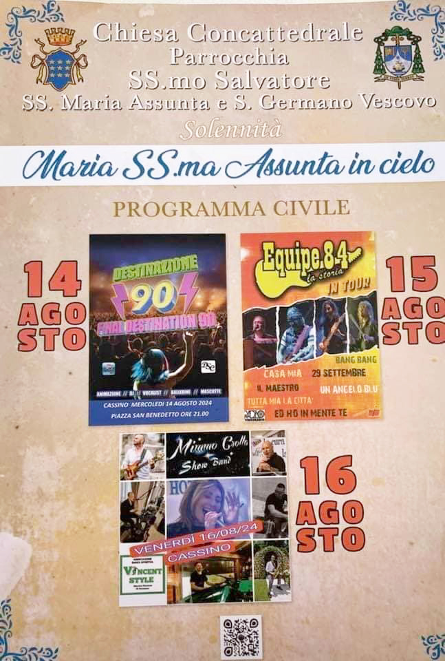 Spiritualità e tradizione nell’evento più caro ai cittadini di Cassino: un appuntamento con la Storia della Città, quello in programma la mattina del 14 agosto. Molto più di una cerimonia religiosa, che unisce tutti i cassinati. Quest’anno inoltre, ricade l’80esimo anniversario dal ritrovamento della statua della Madonna, praticamente integra, tra le rovine della Città distrutta. Una tre giorni di celebrazioni ed eventi che non farà mancare, come ogni anno, momenti di divertimento e svago!