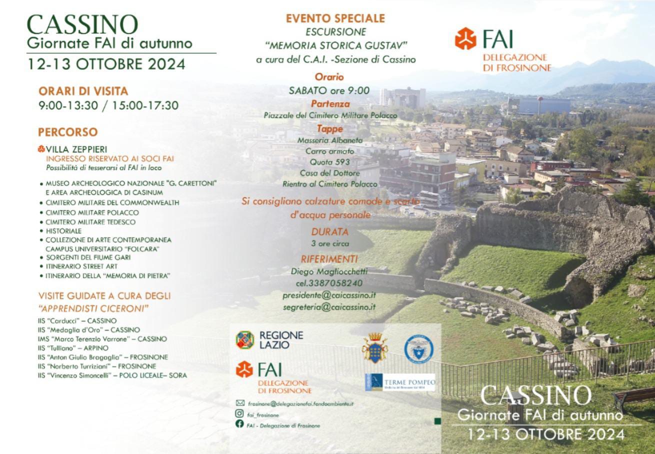 Giornate FAI d’Autunno, tutto pronto per l’edizione 2024 che si apre domani, a Cassino, con un percorso tra le bellezze della Città ed un’escursione speciale dedicata alla Gustav.