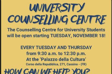 University Counselling Centre for Unicas students, is open at Palazzo della Cultura, Cassino, Corso della Repubblica 271.