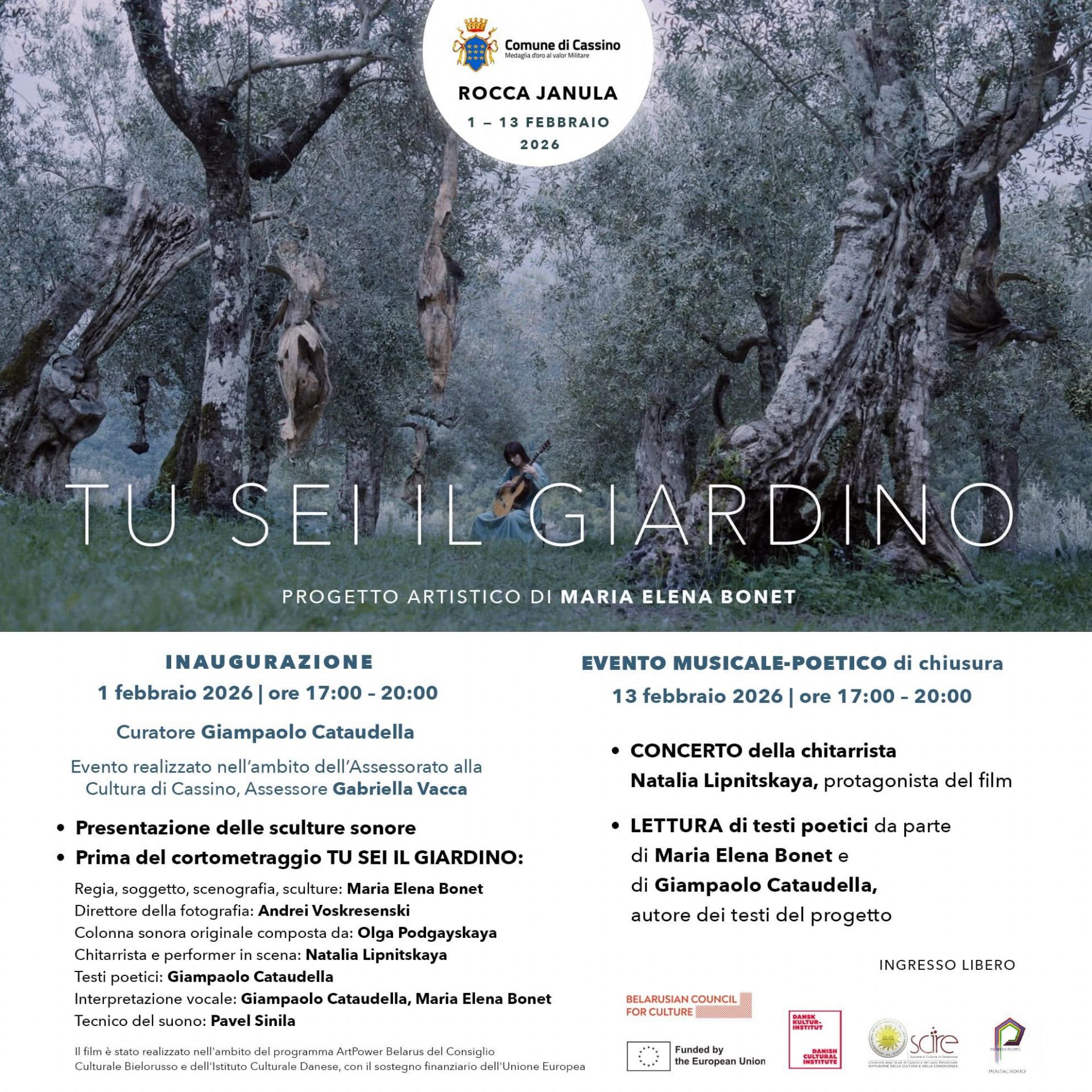 Il Comune di Cassino presenta “Tu sei il giardino”, progetto artistico ideato da Maria Elena Bonet, in corso presso la Rocca Janula fino al 13 febbraio 2026.